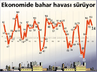 Ekonomide yaşanan olumlu sinyaller resmi rakamlara da yansıdı. Türkiye bu yılın ilk çeyreğinde geçen yılın aynı dönemine göre yüzde 7.4 büyüdü. Sabit Fiyatlarla Gayri Safi Yurtiçi Hasıla (GSYİH) yüzde 8.1 olarak gerçekleşti. Böylece Türkiye yüzde 9.9 büyüyen Çin'den sonra en fazla büyüyen ülke oldu.