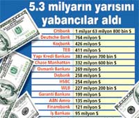 SABAH, 'Anayasa fırlatma krizi'nin 2 yıldır tartışılan sırrına ulaştı İşte bir gecede 5 milyar dolar çeken 21 banka. 19 Şubat 2001'de MGK'da çıkan krizin ardından en çok konuşulan şuydu. Göstere göstere gelen devalüasyon öncesinde Merkez Bankası'ndan tarihin en büyük dolar alımını kimler, hangi bankalar yaptı? Sayısız spekülasyon yapıldı. "Hükümete yakın beş büyük grubun krizi kestirip, hatta tetikleyip sonra dolara döndüğü, yüzde ellilik devalüasyonla da vurgun vurduğu" konuşuldu, durdu. Merkez Bankası, sonunda Meclis Yolsuzlukları Araştırma Komisyonu'na o gece 630 bin liradan dolar alıp, devalüasyondan sonra 950 bin liradan döviz tutan 21 bankanın listesini... Tüm metin Bodrum'da yangın yazlıklara dayandı Muğla'nın Bodrum İlçesi'ne bağlı Konacık Beldesi antik Pedesa Kalesi yakınlarında dün öğle saatlerinde orman yangını çıktı. Çam ağaçlarının bulunduğu sahada başlayan yangın, rüzgarın da etkisiyle kısa sürede büyüdü. Bir ara yerleşim alanlarında tehdit eden yangın yaklaşık 40-50 ... TÜRKİYE'DE Aycell-Aria ayrı marka olarak korunacak Güçlerini birleştiren Aycell ve Aria'nın 2 hafta kuracağı yeni şirket, 2004'te sektörde patlama yapmaya hazırlanıyor. Aycell Pazarlama Direktörü Cüneyt Aksakal, birleşmenin büyük bir sinerji yaratacağını belirterek, 2004 Mayıs'ındaki abone sayısı hedefini 6 milyon olarak veriyor. Birleşmede iki...