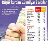 'Anayasa fırlatma krizi' gecesi 5 milyar dolar alan 21 banka yapılan yüzde 40'lık devalüasyonla 1.5 milyar dolar kâr etti. Şubat 2001 krizinin iki yıllık sırrını açığa çıkaran SABAH, bugün de o gün dolara dönen 21 bankanın bir gecede ne kazandığını açıklıyor Bankaların 1.5 milyar dolarlık "kısa gün kârı" toplam özkaynaklarının dörtte birine eşit. 19 Şubat 2001'deki MGK krizinin ardından Merkez Bankası'ndan en yüksek dolar alımını, 1 milyar 63 milyon dolarla Citibank yaptı. Banka, 21 Şubat devalüasyonuyla 304 milyon dolar kazandı. Doların devalüasyonla 630 bin liradan 963 bin liraya fırlamasından en kârlı çıkan beş yerli ise Koçbank, TEB, Yapı Kredi ... Tüm metin Babam da görseydi ÖSS'nin bu yılki şampiyonu Konya Meram Fen Lisesi'nden Emre Kacar oldu. Tüm soruları doğru yanıtlayarak sayısal, sözel ve eşit ağırlık puan türlerinin hepsinde 300 tam puan alan, Emre, öğretmen baba ve emekli banka memuru annenin iki çocuğundan biri. Bu sonucu... TÜRKİYE'DE Faiz dışı fazla 10 katrilyona ulaştı Konsolide bütçe, yılın ilk yarısında 10 katrilyon lira faiz dışı fazla verdi. Maliye Bakanlığı verilerine göre, yıl sonu için öngörülen 20. 2 katrilyon liralık faiz dışı fazla hedefinin yaklaşık yarısı ilk altı ayda gerçekleşti.Bu dönemde, 45.1 katrilyon liralık bütçe açığı tahmininin... EKONOMİ'DE Coni sapır sapır dökülüyor Adı Sanariye. Henüz 9 yaşında. Başkent Bağdat'ta ailesiyle birlikte oturuyor. Büyüyünce öğretmen olmak istiyor. Gündüzleri normal bir çocuk gibi oyunlar oynuyor. Ancak karanlık çöktü mü kabusları başlıyor. Çünkü o, tecavüze uğradı. 7 hafta önce yaşadığı bu korkunç... DÜNYA'DA 'Dökülürlerse dökülsünler' Başbakan Recep Tayyip Erdoğan memur sendikalarının yapılan son zam karşısında sokağa dökülme uyarısına karşılık "Nereye dökülürlerse dökülsünler"dedi.Erdoğan Trabzon'da AKP İl Kongresi'nde yaptığı konuşmada memur sendikalarının son zamma karşılık... POLİTİKA'DA Ağustos'u bekleyin Van Hooijdonk, Aurelio, Selçuk, Fabio Luciano'yu alarak yeni sezon için güçlü bir kadro kuran Fenerbahçe'de başkan Aziz Yıldırım'dan ilginç sözler. Sarı-lacivertli kulübün başkanı, "Taraftarımız merak etmesin. Şampiyon olacak bir kadro kuruyoruz. Herkesi ayağa kaldıracak... SPOR'DA