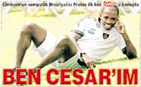 G.Saray'in Sporting Lisbon'dan transfer ettigi Cesar Prates, ilk roportajini SABAH'la yapti. Sempatik tavirlariyla kendini hemen sevdiren Brezilya sagbek, Cafu'ya benzetilmesinden Fatih Terim'e, takim icindeki arkadasliktan gelecekle ilgili planlarina kadar herseyi SABAH okurlariyla paylasti.
