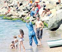 Yalova Esenköy'de, tesettürlülerin denize girdiği "saklı plaj" yanında kadın olmadan gelen erkeklere yasak. Yalova'ya 40 kilometre mesafedeki Esenköy, yeşille mavinin kucaklaştığı bir tatil beldesi. Nüfusu 4 bin ama yazın 80 bine kadar çıkıyor. 7 yıl öncesine kadar köy olan bu beldede şimdi siteler, villalar yükseliyor. Sahillerde de "tesettür mayo"lu kadınların, haşemalı erkeklerin çokluğu dikkati çekiyor. Yoldan briket duvarıyla ayrılan "kadınlar plajı" bir süre önce jandarma tarafından yıkılınca, tesettürlü kadınların yeni adresi belde dışındaki "doğal korunaklı" plaj oldu. İki tarafı kayalarla kapalı, ağaçlarla çevrili, gözlerden ırak plaja, yanında kadın olmadan gelen erkeklerin...