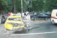 Taksi sürücüsü Birol Şenel yara almazken, müşterileri Uluç Yüce ve Oktay Dikmen olay yerinde kıvranıyordu. Kazadan sonra, bir süre yerde kalarak, ambulans bekleyen yaralılar, çevredeki vatandaşlar ve taksici Şenel'in yardımıyla hastaneye kaldırıldı. Hafif yaralı Uluç Yüce'nin tedavisi ayakta yapılırken, Oktay Dikmen'in bacağında ve belinde kırıklar olduğu belirtildi. Taksici Birol Şenel, olay anının şöyle anlattı