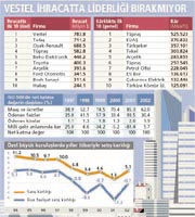 Araştırmada dikkati çeken en önemli nokta, yurtdışına satış yapan firmaların sıralamada yukarılara çıkması oldu. Örneğin Arçelik 5'incilikten 3'üncülüğe çıkmayı başardı. İhracat şampiyonu Vestel ise 2001'de 9'uncu iken, geçen yılı 4'üncü olarak kapattı. 2001'de sıralamada dahi olmayan Toyota Otomotiv listeye 15'inci sıradan giriş yaptı. Ford Otosan 33'üncü sıradan 13'üncülüğe, Beko Elektronik 17'nci sıradan 12'nci sıraya çıktı. Bu da geçen yıl ekonomide yaşanan yüzde 7.4'lük büyümenin ihracat ağırlıklı olduğunu doğrular nitelikte.