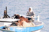 - Anlamassın hiç. Hava bir eser ki. Bak birgün oğlumla ağ kuruyoruz. Oğlan döndü bana bağırıyor " Geliyi ana geliyiii!" diyor. Ula ne geliyi dememe kalmadı; hava bizi yakaladı. Ancak 2 saatte tosbağa gibi sürünüp girdik limana. Çıkınca toprağı öptüm.