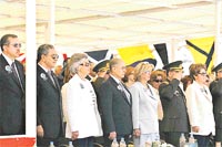 Cumhurbaşkanı Ahmet Necdet Sezer, Başbakan Recep Tayyip Erdoğan, Genel Kurmay Başkanı Orgeneral Hilmi Özkök, Donanma Komutanlığı'nın Gölcük'teki üssünde düzenlenen gemi, helikopter, uçak teslim töreninde bir araya geldi.