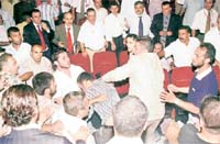 İstanbul İl Başkanı Şinasi Öktem'in kürsüye gelerek kongrenin ardından daha çok toplantılar yapılacağını belirtmesi üzerine, önergeye karşı çıkan bazı partililer ile önergeyi destekleyenler arasında tekme ve tokatlaşmaya varan gerginlikler yaşandı. Kapının dışına kadar süren kavga diğer partililerin müdahalesiyle engellenebildi. Daha sonra salonda sükunet sağlanarak, kongreye devam edildi.