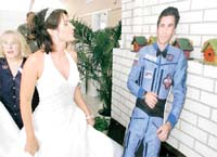 Ancak Malencenko diretti ve amacina ulasti. Hayatlarini birlestirdikleri an aslinda birbirlerine 400 kilometre uzakta bulunuyorlardi. Malencenko, ucus giysisinin uzerine papyon takti. Dimitriev ise, NASA'nin Houston'daki Johnson Uzay Merkezi'nde, gelinligiyle bekliyordu. Dev ekran kuruldu. Kozmonotla canli baglantiya gecildi. Ciftin ilk hareketi birbirlerine opucuk gondermek oldu. Nikahta 200 davetli bulunuyordu. Yargicin sozlerini tekrarlayan, ardindan da evlilik yemini eden ciftin resmen evlenmesinin ve yuzuklerini takmalarinin ardindan, salonda buyuk bir alkis koptu.