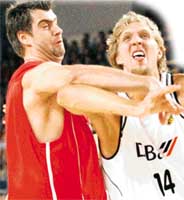 Potada Euro 2003 oncesi 12 Dev Adam, Efes Pilsen World Cup ile son kez seyircisinin onune cikiyor. Hazirliklarini 25 gundur surduren Milliler, 5 Eyul'de Isvec'te duzenlenecek Avrupa Basketbol Sampiyonasi oncesi son ciddi sinavina hazir. Milliler, bugun 20.30'da Rusya, yarin ayni saatte Letonya ile karsi karsiya gelecek. Abdi Ipekci Spor Salonu'ndaki maclarin biletleri Biletix'te satiliyor. Efes Pilsen World Cup'taki tum karsilasmalar NTV'den canli olarak yayinlanacak.