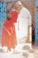Ressam, arkeolog, hoca, müzeci ve yazar olan Osman Hamdi Bey'in "Kaplumbağa Terbiyecisi" Türk müzayede tarihinin en pahalı eseri. 1906 yılı yapımı ve tual üzerine yağlıboya olan "Kaplumbağa Terbiyecisi" 223x177 ebatlarında.