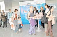 THY tarafından, Atatürk Havalimanı'nda düzenlenen kutlama programı çerçevesinde dün New York'a uçan 270 yolcuya, lokum ikram edildi. 'Tatlı yiyelim, tatlı uçalım' sloganından yola çıkan THY dün ayrıca New York'a ek sefer koydu.