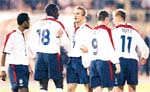 7.Grup'ta liderlik için çekiştiğimiz İngiltere, ölüp ölüp dirildiği maçta Makedonya'yı 2-1'le devirdi. İngiltere, ilk maçta 2-2 berabere kaldığı Makedonya karşısında 28. dakikada Hristov'un golüyle 1-0 yenik duruma düştü. 52. dakikada 17 yaşındaki Wayne Rooney beraberliği sağlarken, milli takımında gol atan en genç isim oldu. 63'te John Terry'nin düşürülmesiyle penaltı kazandı. Atışı Beckham gole çevirdi. Maç öncesi Makedon taraftarlar İngiliz bayrağı yakarken, İngilizler'in siyahi futbolcularına ırkçı tezahuratta bulundular.