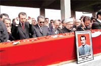 Burada kılınan cenaze namazından sonra Yazıcıoğlu'nun tabutunu Meclis Başkanı Arınç ve Başbakan Erdoğan, aynı anda omuzladı. Görevli polisler, Erdoğan'dan tabutu almak istedi. Ancak Erdoğan, öneriyi reddetti. Arabaya konularak havaalanına götürülen Yazıcıoğlu'nun naaşı, askeri uçakla Denizli'nin Çardak ilçesine götürüldü. Denizli Valiliği önünde düzenlenecek törenin ardından karayolu ile Aydın'ın Söke İlçesi'ne götürülecek olan Yazıcıoğlu'nun naaşı, babasının mezarı yanına defnedilecek. Göksel ÇAĞLAV - Bülent AYDEMİR