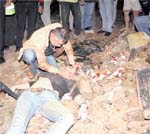 Kaygan yolda aşırı hız yapınca beş metrelik inşaat çukuruna uçtular