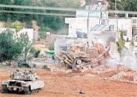 İsrail Başbakanı Ariel Şaron'un teröristlere durmaksızın vurma emri verdiği haberlerinin basına yansımasından bir hafta sonra, yani dün, Batı Şeria'nın El Halil kentinde askeri operasyon düzenlendi. Bir Filistinli militan, çatışmaya girdiği İsrail askerlerinden kaçmak için buradaki bir eve saklandı. Karşılıklı ateş sonrası militan teslim olmayınca İsrail ordusu da "çözümü", içine saklandığı evi militanın başına yıkmakta buldu... Terör örgütü Hamas'ın bir üyesi olduğu açıklanan militanın cesedi, enkaza dönen binadan çıkarıldı. Reuters haber ajansının olay yerindeki muhabiri, militanın cesedinin yanında bir otomatik tüfek bulunduğunu bildirdi. Bölgede bir aydır yeniden yükselişe geçen tansiyon, Amerika'nın arabuluculuğunda hazırlanan yol haritasını da zora sokuyor. Yol haritası, 2005 yılında Batı Şeria ve Gazze Şeridi'nde bağımsız bir Filistin devleti kurulmasını öngörüyor. Ancak İsrail yönetimi, Filistin lideri Arafat'ı barış görüşmelerinde müzakereci olarak kabul etmiyor. İstifa eden Mahmud Abbas'ın yerine atanan yeni Filistin Başbakanı Ahmed Kurey de henüz kabinesini kurup görüşmelere başlamadı. Filistin yönetimi, ilk önce İsrail'in prensipte aldığını açıkladığı Arafat'a sürgün tehdidinden vazgeçmesini istiyor.