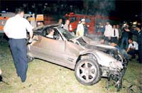 İstanbul'da aşırı süratin neden olduğu kaza, önceki gece saat 21.30 sıralarında Levent varyant üzerinde meydana geldi. Beytepe Üniversitesi'nde okuyan yirmi yaşındaki Ersan Arslan, yanında arkadaşı Mehmet Kıroğlu ile birlikte Maslak'tan Levent'e doğru yola yola çıktı. Ağabeyine ait 34 EA 906 Mercedes marka otomobil ile aşırı hız yapan genç adam bir ara önünde giden aracı geçmek istedi. Geçmeye çalıştığı aracın önündeki otomobili son anda fark eden ve bu araca çarpmamak için direksiyonu aniden sağa kıran Ersan Arslan, aracın hakimiyetini kaybederek varyant üzerindeki korkuluklara çarptı. Aşırı hızın etkisiyle korkuluğu parçalayan araç yaklaşık sekiz metreden aşağı uçtu. Şans eseri varyant altındaki boş alana düşen Ersan Arslan ile yanında bulunan arkadaşı Mehmet Kıroğlu, kaza nedeniyle hurdaya dönen aracın içinde sıkışıp kaldılar.