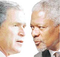 Bush, BM'den Irak için destek istedi. Annan ise orman kanunlarıyla yönetildiği döneme dönüleceği uyarısını yaptı