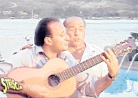 Basbakan, Kanal 5'in 20.30'da yayinlanan 'Striscia La Notizia' adli haber programinda, bu kez baska bir sarki ile cikti secmenlerinin karsisina. Programin sunuculari Ezio Greggio ve Enzo Iachetti ise, basbakanlari ile uzun uzun dalga gecti. Berlusconi'yi Fransiz sarkici Moris Chevalier'ye benzeten iki sunucu, Adriano Celentano taklidini ise ove ove bitiremedi.