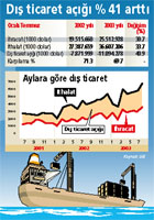 Doviz kurunun dusmesiyle patlayan ithalat dis ticaret acigini tehdit etmeye basladi. Temmuz ayindaki ithalat yuzde 34.6, ihracat da yuzde 32 artis gosterdi. Dis ticaret acigi yuzde 40.2 artarken, ihracatin ithalati karsilama orani yuzde 66'ya indi. Ithalatin mal gruplarina dagilimi incelendiginde ise en fazla artis yuzde 39.3 ile tuketim mallari ithalatinda goruldu.