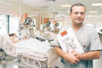 Hekim duygularini canli tutarsa hasta hayatta kalir." Doktor Kadir Dogruer, duygularini canli tutmak, dolayisiyla insanlari hayata baglamak icin ilginc bir yontem kullaniyor Yogun bakim servisinde hastalarin karikaturlerini ciziyor. Hatta bu karikaturlerin sergisini aciyor. 26 Eylul'de Istanbul Memorial Hastanesi'nde acilacak bu ilginc sergi tum doktor, hasta ve hasta yakinlarina acik olacak. Serginin ilk gunu ayni zamanda yogun bakimda yasayanlarin psikolojisi, hasta yakinlarinin yogun bakimdaki duygulari, yogun bakim psikozu gibi konular da tartisilacak. Sergiden elde edilecek gelir ise TEMA Vakfi'na bagislanacak.