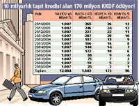 Son günlerde ekonomide esen bahar havasıyla birlikte tüketici kredileri, başta otomobil kredisi olmak üzere yeniden artış gösterdi. Bu artışla umutlanan otomobil üreticileri KKDF'nin inmesi ile birlikte piyasanın daha da canlanacağını ifade ediyorlar. Aslında haksız da değiller. Somut bir örnekle ortaya çıkan maliyeti netleştirmek mümkün 1 yıl vadeli 10 milyar lira taşıt kredisi aldığınızı düşünelim. Uygulanan faiz oranı da 2.65 olsun. 10 milyar için tüketicinin faiz ödemesi 1 milyar 800 milyon lira civarında. Ancak kredinin aylık taksidi üzerinden toplam 173 milyon KKDF, 86 milyon lira da MSMV kesilince 10'a 1.8 milyar faiz ödeyeceğinize önünüze 2 milyar liralık bir rakam çıkıyor.