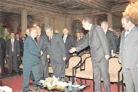 Dolmabahçe Sarayı'ında yapılan Türk Dil Bayramı töreni devletin zirvesini barıştırdı. Törende bir araya gelen Cumhurbaşkanı Ahmet Necdet Sezer ile Başbakan Recep Tayyip Erdoğan üniversite gerginliğini bir yana bırakıp tokalaşarak "dil de birlik, zirvede dostluk" mesajını verdiler.