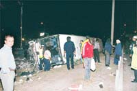 Yoldan aldığı hayat kadınıyla sohbete dalan otobüs şoförü, bir de çalan cep telefonuna yanıt verince facia kaçınılmaz oldu. Dikkati dağılan şoförün kullandığı otobüs kontrolden çıkıp şarampole yuvarlandı. Altı kişi öldü, 35 kişi yaralandı