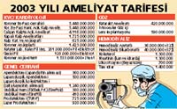 Paket fiyatlar, Sağlık Bakanlığı'na bağlı sağlık kurumlarında, 1 Eylül 2003 - 31 Aralık 2003 tarihleri arasında geçerli olacak.