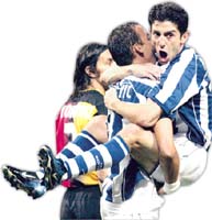 İkinci yarı Tamas yoktu. Ama koca bir 45 dakika çöpe atılmış, skorda da geriye düşülmüştü. Sarı-kırmızılılar, fırtına gibi girdikleri ikinci 45'te Real Sociedad'ın etten, iki şutta da elden-koldan duvarını salladı; nihayet Arif'in pasında Hakan Şükür ile yıktı. Sıra galibiyet golündeydi. Ama gol konuk ekipten geldi. Tek kale oynanan dakikalarda Xabi Alonso'nun şok kafa golü maçı erkenden bitirdi.