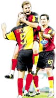 "Galatasaray golü nasıl atacak?" diyorduk ki, ceza alanının sol çaprazında bir serbest vuruş kazandı sarı-kırmızılılar. Ve hayrettir bu kez topun başına ne Arif ne de Hasan geldi. De Boer'un köşeye giden frikiğiyle derin bir "Oh" çeken sarı-kırmızılılar, devre biterken Metin ve Korhan'ın kaçırdığı fırsatlarda şanslıydı. Bu şans ikinci yarının başında Sumiyala'nın kaçırdığı golde de sahnedeydi. Ama sonra yerini Bratu'ya bıraktı. Tartışılan Rumen, önce Arif'e yazılan golün başrol oyuncusu oldu. Sonra Ayhan'ın asistinde son vuruşu yaptı. 54 dakika dolmadan maç bitmiş gibiydi.
