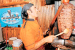 Kapalicarsi'da acilan bir bufe, musterilerine devekusu etinden doner, yumurtasindan da omlet servisi yapiyor