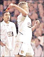 Leeds United'in golcusu Alan Smith, sahaya atilan siseyi tribunlere firlatip bir bayan taraftari yaraladi