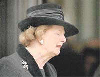 Ancak dün, bütün o sertliğinden uzaktı Demir Leydi... Geçtiğimiz Haziran'da ölen eşi Denis için başkent Londra'daki Guards mezarlığında düzenlenen anma töreninde hıçkırıklara boğularak ağladı. Oğlu Mark ve kızı Carol'un kollarına girerek yürüyen Thatcher, ayakta zor duruyordu. Törene katılan 600 yakın dostuna, yüzlerce gazeteci ve kameramana aldırış etmeden, çok sevgili eşinin arkasından acısını bir kez daha yaşadı. İngiliz medyası, eski Başbakan'ın bu acı dolu fotoğraflarını verip "Bayan Thatcher bu acıya daha ne kadar dayanabilecek?" yorumunda bulundu.