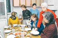 Kadinlar, uc ay sonunda belediye tarafindan ise yerlestiriliyor. Bu isler ise genellikle yatili temizlik isciligi ya da hasta bakiciligi oluyor. Kimi zaman da sekreterlik. Cocuklu kadinlar ise, evde kalan baska bir kadinla eve yerlestiriliyor. Belediyenin esyasini verdigi kadinlardan cocuklu olani evde otururken digeri calisiyor. Ya da donusumlu olarak calisiyorlar. Kadinlar ev kiralarini ise kendileri oduyor.