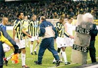 Macin gozlemcileri Ahmet Akcay ve Mekki Keskin mac sonrasi soyunma odasinda Aydin'i "Victoria'ya iki kez sari kart gosterip kirmiziyi cikarmadin" diye uyardilar