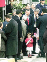 Oglen saatlerine kadar evinde bayram ziyaretlerini kabul eden Basbakan Erdogan, saat 13.00 siralarinda evden cikti. Kapida kendisini gormek icin gelen vatandaslar ve tanidiklariyla bayramlasan Erdogan, yanina yaklasan cocuklarinda yanaklarini oksayarak optu. Evinin kapisinin onunde bekleyen kucuk bir kiz cocugunu once open Erdogan, daha sonra bir barbi bebek hediye etti. Basbakan'dan aldigi oyuncakla mutlu olan kucuk kiz heyecanla yanindan uzaklasti.