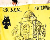 Yunanca pankart Yeni yapılan Atina Olimpiyat Stadı'ndaki AEK-Galatasaray maçına Yunanlılar yoğun ilgi gösterdiler. 60 bin kişilik stadın 40 bin kişilik bölümünün biletleri karşılaşmadan bir gün önce satılırken, tribünlerde 45 bin kişi vardı. Sahaya çıkarken Yunanca "AEK'nın 80. yılını kutlarız" yazılı bir pankart taşıyan Galatasaraylı futbolcular çılgınca alkışlarla karşılandılar.