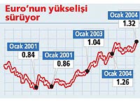 Euro/dolar paritesi ilk kez 1.3200 seviyesini aştı 1.3238 ile tarihi bir rekor yaptı. ABD Merkez Bankası (FED) Başkanı Alan Greenspan'ın bu hafta başında yaptığı açıklamaların ardından dolar düşüşe geçmişti. Greenspan, ABD cari ve bütçe açıklarıyla ilgili uyarıda bulundu, bu da piyasalarda doların zayıflamaya devam edeceği beklentilerine neden oldu. ABD henüz bu konuda ciddi adımlar atacağını gösteren bir harekette bulunmadı. Bunun yanı sıra Rusya'da rezervlerindeki dolar miktarını azaltarak, euro miktarını çoğaltacağını açıkladı. Öte yandan, Çin'in, parası yuanı birkaç gün içinde revalüe edeceği yolundaki söylentiler, bu hafta sonu Pekin'de yapılacak üst düzey bir ekonomik toplantı öncesinde yoğunlaştı. Dünyanın yedinci büyük sanayisine sahip olan Çin, parası yuanı dolar karşısında 8.28 gibi çok dar bir bantta tutan politikasını değiştirmesi için uluslararası baskıya maruz kalıyor.