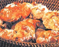 MALZEMELER (18 adet) * 3 su bardağı kekun * Yarım çay kaşığı tarçın 90 gram tereyağı * 1,5 çay bardağı pudra şekeri * 1 su bardağı kuru üzüm * 2 çorba kaşığı karışık meyve kabuğu * 1 adet yumurta (hafif çırpılımş) * Yarım su bardağı süt * 1 çorba kaşığı pudra şekeri