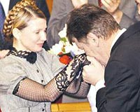 Ukrayna'da Turuncu Devrim'in ardındaki isimlerden Yulia Timoşenko artık resmen başbakan... Ukrayna Parlamentosu, dün yapılan oylamayla Timoşenko'- nun başbakanlığını resmen onayladı. Oylamada 373 milletvekilinin tamamı Timoşenko'nun başbakan olarak atanmasını destekledi. 3 milletvekili de çekimser oy kullandı. Oylamanın ardından Timoşenko sevincini ülkenin yeni Başkanı Viktor Yuşçenko ile paylaştı. Timoşenko Yuşçenko'ya sarılırken, Başkan da yeni Başbakan'ı ellerini öperek kutladı.Timoşenko, 1990'larda doğalgaz kaçakçılığı yapmakla suçlanmıştı. Dava geçtiğimiz ay delil yetersizliğinden düşmüştü.