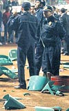 Trabzon'da TAYAD üyelerine yönelik yapılan saldırı nedeniyle D.Bakır'daki maçta polis olağanüstü önlemler aldı... 84.dakikada verilmeyen gol sonrası taraftarlar sahaya koltukları atmaya başladı... Maç sonunda da bir grup polise saldırdı... 1 kişi gözaltına alınırken, MHP İl Binası'na taşlı saldırıda bulunuldu...