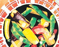 * 250 gr. taze fasulye * 2 adet kabak * 2 adet havuç * 2 adet patlıcan * 3 adet patates * 2 adet soğan * 1 kg. domates * 2 adet yeşil 2 adet kırmızı biber * 1 su bardağı mısır * 1 su bardağı bezelye * 1 su bardağı mantar * 1 çay bardağı zeytinyağı * Maydanoz
