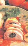 Göğüs dolması Tavuk göğsünü ikiye bölün. Keskin bir bıçakla geniş kısımlarını ortadan kesmeden açın. Ispanağı temizleyin. Soğan ve mantarı çok ince kıyın. Sıvı yağda unu kavurun. Sebzeleri ekleyin. Tuz, karabiberi ilave edin. Soğumaya bırakın. Sonra malzemeyi krema pompasına koyun. Açılan yerden tavuk etini doldurun. Üzerine salça sürün. Folyoya sarın. Tepsiye alın. Üzerine 1 kahve fincanı su ekleyin. Önceden ısıtılmış 180 dereceli fırında eti iyice yumuşayana kadar pişirin. Sonra folyoyu üzerinden çıkarın. Dilimleyerek servis yapın.
