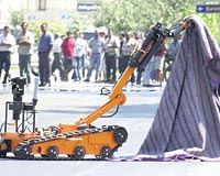 Polis,kuşkulu paketlerde artık bomba imha robotlarını kullanıyor... Bunun son örneği Antalya'da yaşandı... Yolda duran iki battaniye, şüphe uyandırınca robot getirildi... Battaniyelerin bir araçtan düştüğü anlaşıldı... Türkiye'de Kanada'dan getirilen beş adet imha robotu var... Tanesi 80 bin Euro... İtme, kaldırma gibi özellikleri bulunan robotlar basınçlı su sıkarak da şüpheli paketi kontrol edebiliyor.