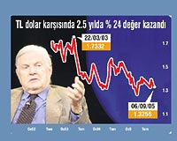 Avrupa'da ortak para birimi Euro'ya geçiş fikrini 40 yıl önce ortaya atan, 1999 Nobel ekonomi ödülü sahibi Robert Mundell, Sabah'a konuştu. Columbia Üniversitesi Öğretim Üyesi Robert Mundell, Türkiye'nin 2001 krizinden sonra uyguladığı esnek kur rejiminin lira için yüksek borçluluk sendromuna yol açtığını belirterek, şöyle konuştu: "Esnek kur rejimi altında,' Türkiye AB'ye girecek' spekülasyonları ile bir sermaye akışı varsa lira aşırı değerli hale gelebilir. Bu sermaye akışı, güçlü bir ticaret açığı yaratır ve finanse eder. Bu da cari işlemler açığı ile birlikte daha yüksek borçluluk sendromuna yol açar." Uzun yıllar uluslararası para teorileri üzerinde çalışan ve Euro'nun babası olarak bilinen Mundell, Türkiye'nin bütçe kontrolünü sağladıktan sonra, para birimi olarak Euro'yu benimsemesini önerdi. Mundell sorularımızı şöyle yanıtladı: