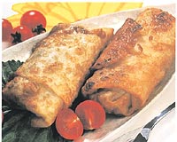 Çin böreği Soya sosu ve suyu ısıtın. Etleri katıp 2-3 dakika karıştırarak soteleyin. Taze soğan, mantar ve soya filizini ilave edip, karıştırarak 1-2 dakika daha soteleyin. Tozşeker, tuz ve kırmızı biberi katıp, harmanlayın. Yufkaları her biri 8 adet üçgenler olacak şekilde kesin. Her bir üçgenin geniş kısmına iki çorba kaşığı hazırladığınız harçtan koyun. Yufkanın sağ ve sol kenarlarından 1'er cm'lik kısmı harcın üzerine katlayın ve yufkanın sivri ucuna doğru sıkı olmayacak şekilde sarın (sigara böreği şeklinde). Börekleri kızgın yağda pembeleşinceye kadar kızartın, havlu kağıt üzerine çıkartıp, fazla yağlarını süzün. Sıcak servis yapın. (16 adet) * 1 küçük paket tavuk göğüs şerit * 1 çorba kaşığı soya sosu * 2 çorba kaşığı su * 2 adet taze soğan (ince kıyılmış) * 1 su bardağı mantar (ince dilimlenmiş) * 1 çay bardağı soya filizi * 1 çay kaşığı tozşeker * Tuz, pul kırmızıbiber (arzu edilen miktarda) * 2 adet yufka * Sıvıyağ (kızartmak için)