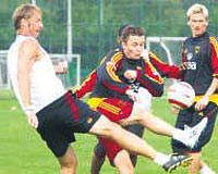 G.Saray, Samsun maçı hazırlıklarını tek idmanla sürdürdü. Yaklaşık 1.5 saat süren idmanda, sarı-kırmızılı futbolcular taktik ağırlıklı çalıştı. Ligde 6 maçta 9 gol atarak zirve yapan Ümit Karan, dünkü idmanda da şovunu yaptı. Yıldız oyuncunun attığı goller alkışlandı. Ayrıca Hasan Şaş'ın da çok hırslı olduğu gözlendi. G.Saray'ın ilk onbirinde yarın mecburi değişiklikler var. Sakatlığı süren Cihan'ın yerine Uğur en büyük aday. Hakan Şükür'ün yokluğunda Ümit-Necati ikilisinin oynaması bekleniyor. Ortada Necati'den doğacak boşluğu ise, beklenenden çabuk iyileşen İliç dolduracak.