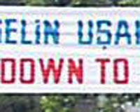 Mehmet Ağar'ın konuşma yaptığı platformun karşısında asılı olan afişlerden özellikle biri ilgi çekti. "Gelin Uşaklar bunları Down To Drain edelum" yazılı afişteki İngilizce ifade gülüşmelere neden oldu. Orijinali "Bu iş tamamen bitti" anlamına gelen "Down The Drain" ifadesinden DYP kurmayları tarafından türetilen "Down To Drain"in sözlüklerde bir karşılığı yok. Ancak kelime karşılıklarına bakarak yapılacak 'Tarzanca' çevrimi "kanalizasyona dökelim" şeklinde ifade edilebilir.