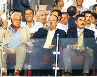 Başkanı Cemal Aydın, Ankaraspor Başkanı Hilmi Gökçınar, G.Birliği Başkanı İlhan Cavcav, Ankara Bld. Başkanı ve Ankaraspor Onursal Başkanı Melih Gökçek yanyana seyretti.