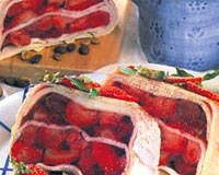 Un, bir tutam tuz, yumurta ve sütü çırpın. Margarini eritin. Teflon bir tavayı erimiş margarinle yağlayın. Kepçeyle karışımdan alıp, tavaya dökün. Kreplerin iki yüzünü de pişirin. Jöle için yaprak jelatini soğuk suda eritin. Çileklerin yarısını şekerle birlikte robottan geçirin. Jöleyi, sütle inceltin. Küçük küçük dilimlenmiş çileğin üzerine gezdirin. Buzdolabına alıp, soğutun. Dikdörtgen bir kek kalıbına kenarları dışarı taşacak şekilde birkaç tane krep yerleştirin. Kalan çileklerin yarısını da ikiye kesin. Kek kalıbına kat kat jöle, çilek ve krep yerleştirin. Pastayı buzlukta 2 saat bekletin. Üzerini krem şanti ve artan çileklerle süsleyip, servis yapın.