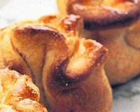 Unun ortasını havuz gibi açın, yağ, kabartma tozu ve suyu ilave edip, dairesel hareketlerle una yedirin ve hamur özleşene kadar yaklaşık 5 dakika yoğurun. Hamurun üzerini mutfak havlusu ile örtüp, en az 30 dakika dinlendirin. Düz, unlu bir yüzeyde hamuru 33 mm. kalınlığında açıp, su bardağı ağzıyla 6-7 cm. çapında daireler kesin. Lor ve rokayı çatalla ezerek iyice karıştırın. Her bir dairenin ortasına hazırladığınız harçtan bir tatlı kaşığı koyun, hamurun kenarlarını yukarı doğru ve hafifçe burarak bohça şeklinde toplayıp, yağlanmış fırın tepsisine yerleştirin. Üzerlerine fırça ile yumurta sarısı sürün. Önceden ısıtılmış 170 derece fırında, hamurlar altın sarısı renk alıncaya kadar yaklaşık 30 dakika pişirin. Ilık veya soğuk olarak servis yapın.